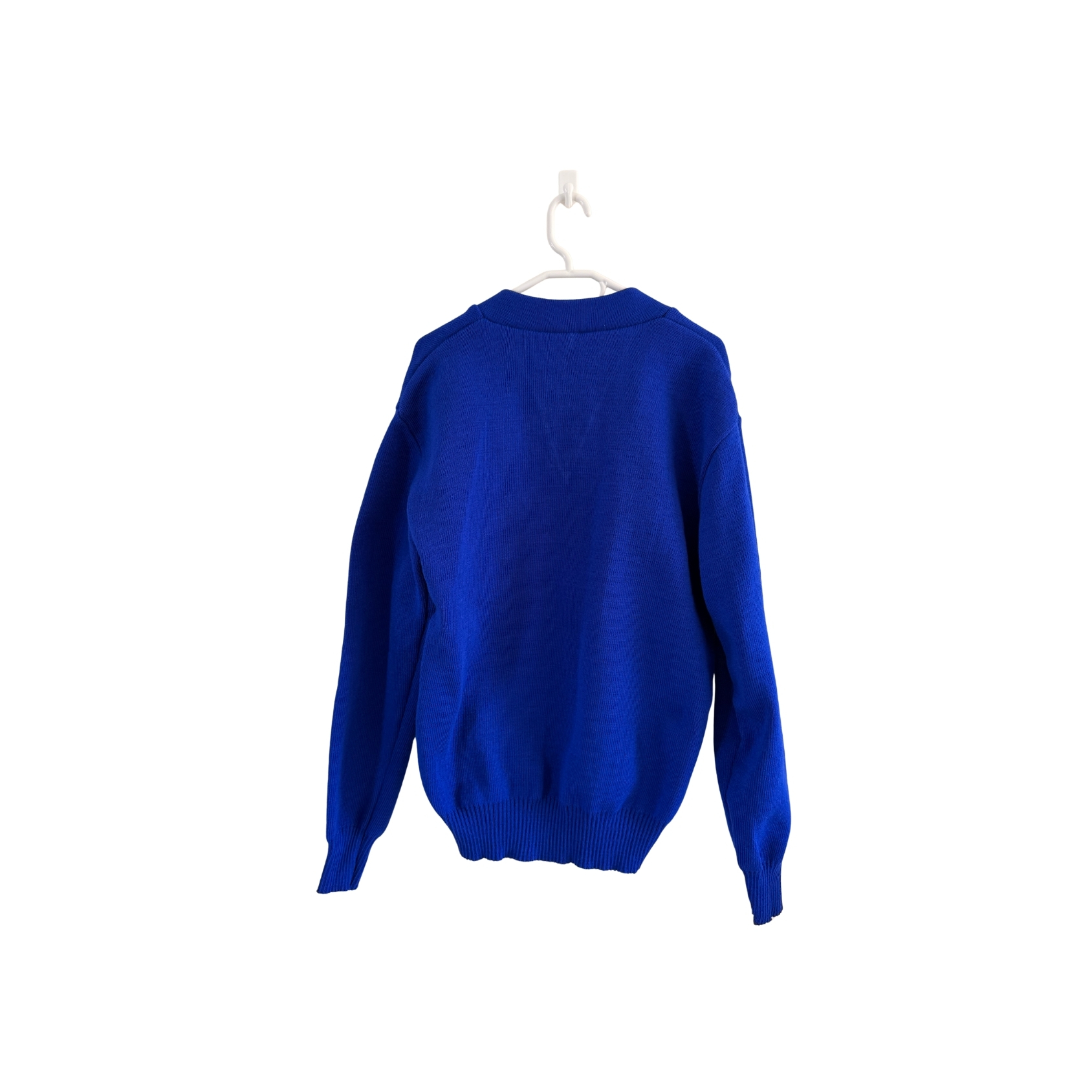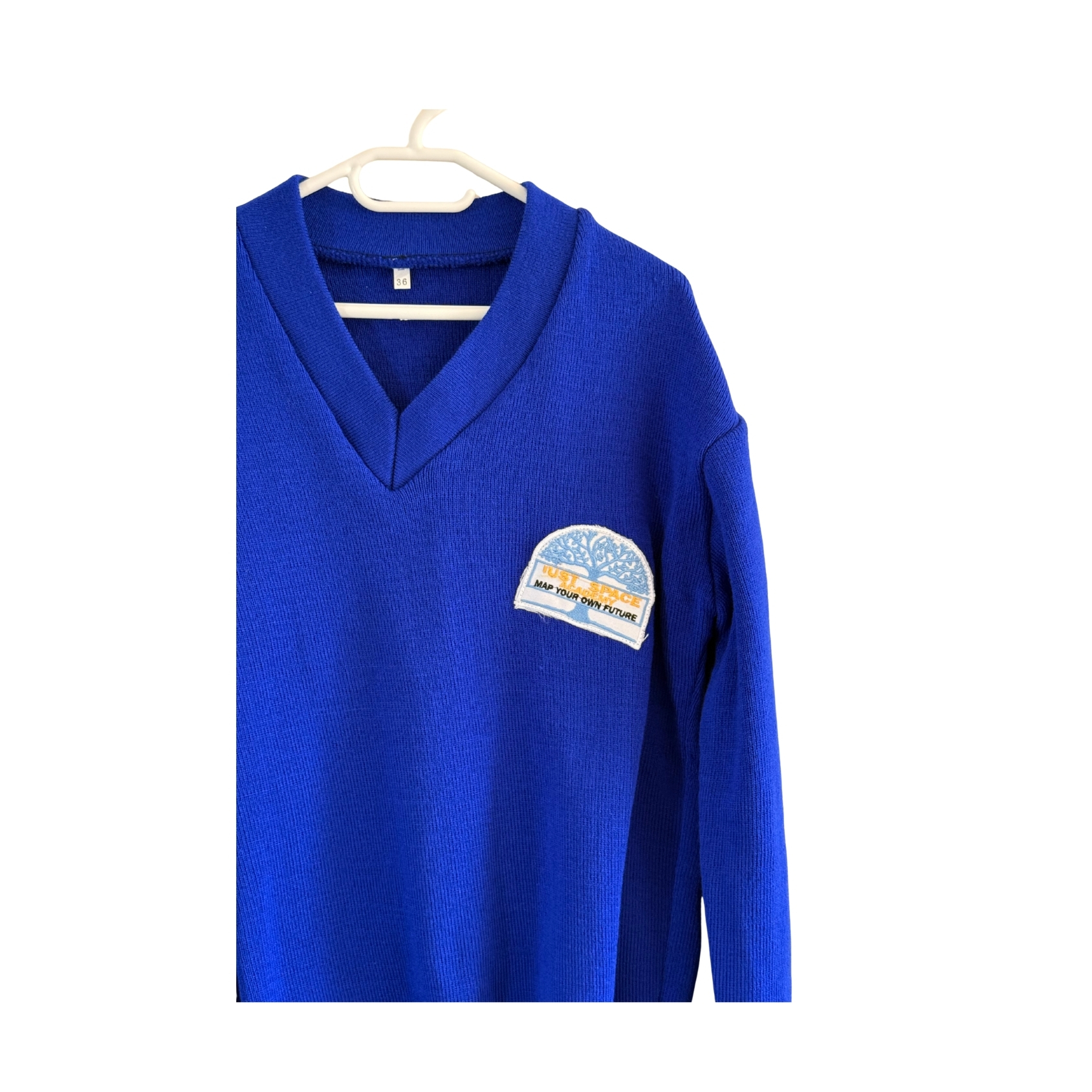 A warm, durable blue school jersey proudly made in our small factory — featuring the Just Space Academy badge.